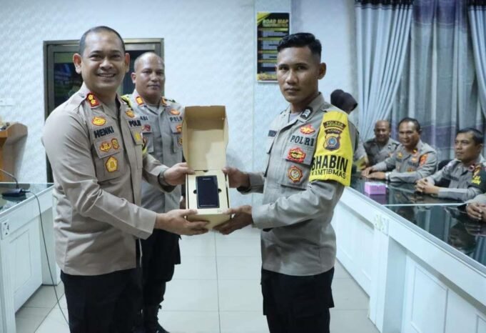 Suara Indonesia News - Lhokseumawe. Kapolres Lhokseumawe, AKBP Henki Ismanto, S.I.K., secara simbolis menyerahkan HP Motorola LEX 11 kepada personil Bhabinkamtibmas jajaran Polres Lhokseumawe yang berlangsung di Aula Vicon Polres Lhokseumawe pada Jumat pagi tanggal 03 Mei 2024.Hadir dalam...