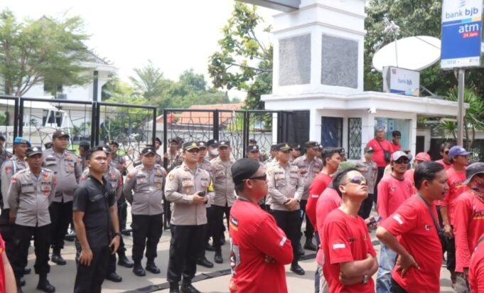 Suara Indonesia News - Indramayu. Polres Indramayu jajaran Polda Jabar melaksanakan pengamanan aksi unjuk rasa yang dilakukan oleh massa buruh dari serikat buruh GASBumi FSBmigas-KASBI Indramayu. Rabu (24/4/2024)
