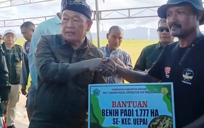 Suara Indonesia News – Konawe. Selain melakukan kegiatan panen perdana padi di desa Tawamelewe, Kecamatan Uepai, Kabupaten Konawe, Sulawesi Tenggara (Sultra), Pj Bupati Konawe Dr.H.Harmin Ramba,SE.MM., juga menyerahkan bantuan berupa bibit padi, pupuk, pestisida dan Handtractor kepada para petani...