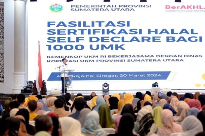 Suara Indonesia News - Medan. Pemerintah Provinsi (Pemprov) Sumatera Utara (Sumut) bekerja sama dengan Kementerian Koperasi dan Usaha Kecil Menengah (UKM) Republik Indonesia, memfasilitasi sertifikat halal unuk 1.000 UMKM. Kegiatan ini bertujuan mendukung UMKM memiliki daya saing tinggi.Menurut Penjabat...