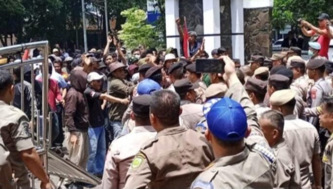 Warga sempat bersitegang dengan aparat keamanan yang menjaga di depan gerbang pintu masuk...