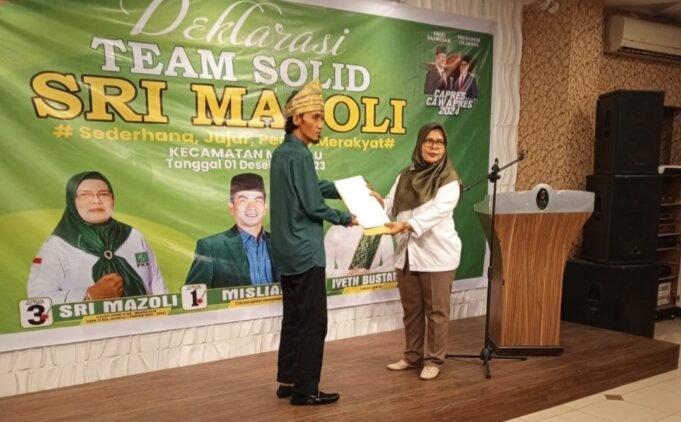 Suara Indonesia News - Duri. Calon Legislatif (Caleg) Sri Mazoli yang maju dari partai PKB Nomor urut 3 daerah pilihan 4 kecamatan Mandau kabupaten Bengkalis secara resmi telah mengukuhkan serta mendeklarasikan tim pemenangan yang bernama Tim Solid Sri Mazoli.