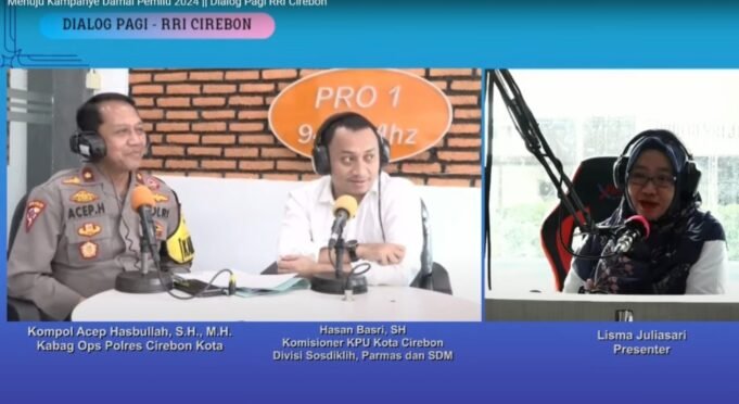 Suara Indonesia News - Kota Cirebon. Kabag Ops Polres Cirebon Kota Kompol Acep Hasbullah, S.H.,M.H menghadiri Dialog Interaktif di RRI Cirebon dengan Topik "Menuju Kampanye Damai Pemilu 2024", Senin (27/11/23).