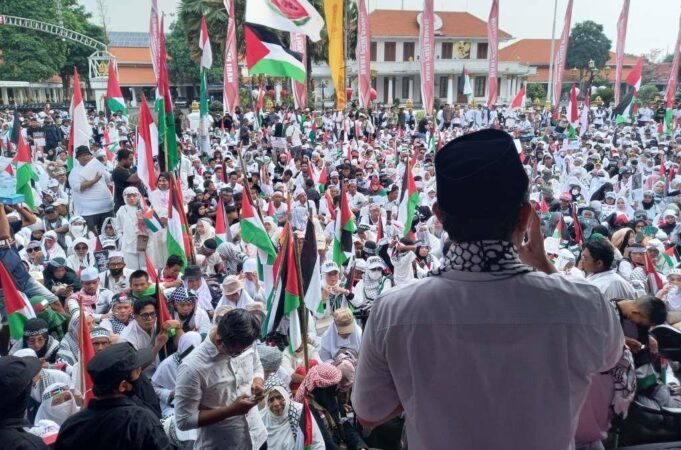 Suara Indonesia News - Surabaya. Aksi Bela Palestina di Kota Pahlawan Surabaya dihadiri Puluhan ribu peserta aksi, yang memadati depan grahadi jl. Gubernur Suryo Jl. Yos Sudarso dan Jl. Tunjungan serta jl. Embong Malang - Surabaya. Aksi yang di...