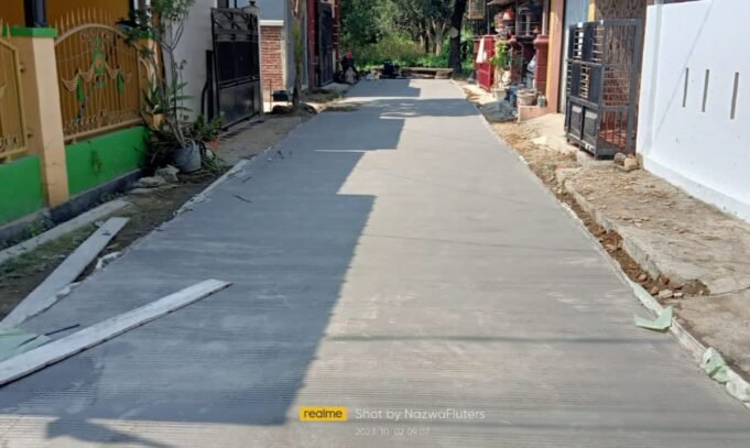 Kini Warga masyarakat merasa gembira jalan yang semula susah dilalui sekarang sudah di cor...