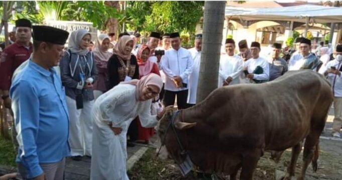 Suara Indonesia News - Indramayu. Satu ekor sapi hewan kurban diserahkan Bupati Nina Agustina kepada Pengurus Dewan Kemakmuran Masjid (DKM) Masjid Agung Indramayu sebagai panitia pemotongan hewan kurban pada momen Hari Raya Idul Adha 1444 H. Kamis (29/6/23)Memiliki berat...