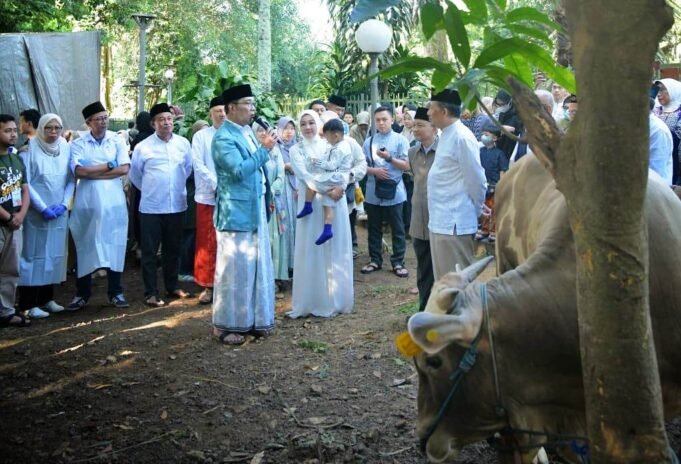 Suara Indonesia News - Kota Bandung. Gubernur Jawa Barat Ridwan Kamil meninjau proses pemotongan hewan kurban di Masjid Salman ITB, Jalan Ganeca, Kota Bandung, Kamis (29/6/2023).Hal itu dilakukan usai salat Iduladha di Masjid Raya Al Jabbar dan menyerahkan kurban...