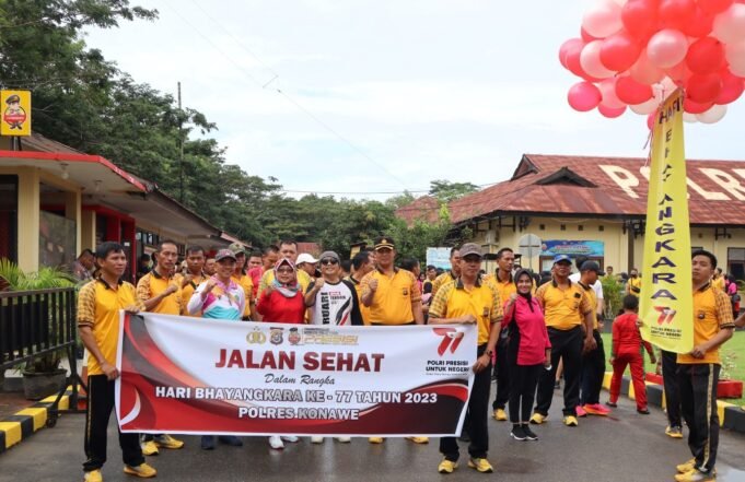 Suara Indonesia News – Konawe. Dalam rangka menyambut Hari Bhayangkara ke 77, Polres Konawe, menggelar olahraga jalan sehat bersama Pemda Konawe dan masyarakat.Hari bayangkara ke 77 tahun 2023 ini mengangkat tema “Polri Presisi untuk Negeri dan Pemilu Damai Untuk...