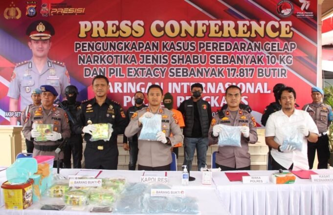 Suara Indonesia News – Duri. Polres Bengkalis melalui Tim Satuanrestik (Satres) Narkoba berhasil mengungkap Tindak Pidana jenis Narkotika jenis sabu-sabu sebanyak 10 kilo dan 17,817 pil ekstasi di halaman Mapolres Bengkalis jalan Pertanian, Senin 26 Juni 2023.Barang haram tersebut...