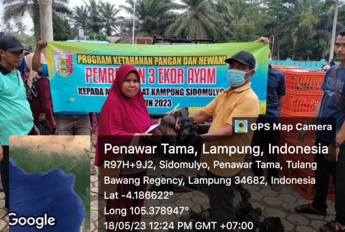 Suara Indonesia News - Tulangbawang, Lampung. Pemerintah Kampung Sidomulyo, Kecamatan Penawartama, Kab. Tulang Bawang ,realisasikan Program Ketahanan pangan berupa pembagian ayam kampung, bertempat di Balai Kampung Sidomulyo, pada Hari Kamis, 18/05/2023.Program ketahanan pangan merupakan program nasional pemerintah yang bertujuan...
