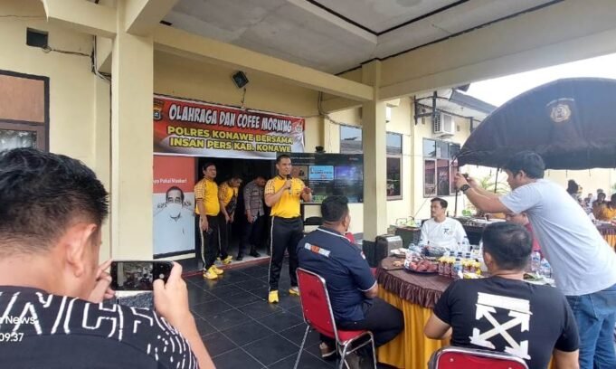 Suara Indonesia News – Konawe. Jajaran Polres konawe, Sulawesi Tenggara, mengadakan acara olahraga dan Coffee Morning Polres Konawe bersama insan Pers kab. Konawe, yang berlangsung di halaman upacara kantor Polres Konawe. (14/01-2023)Sebelum acara Coffee morning berlangsung, kegiatan olahraga senam...
