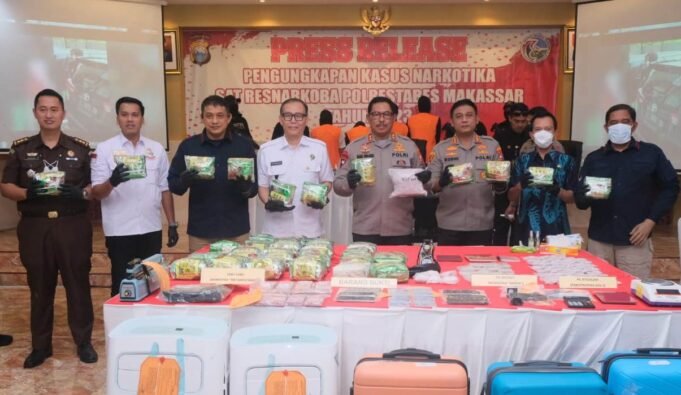 Suara Indonesia News - Makasar. Aparat kepolisian di Sulawesi Selatan (Sulsel), berhasil pengungkapan sindikat jaringan peredaran gelap narkotika dengan barang bukti seberat 43 kilogram.Selain itu juga menyita sebanyak 15.056 butir pil ekstasi, terdiri pil berlogo channel sebanyak 1891 butir...