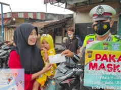 Agar Masyarakat Terbiasa Memakai Masker, Satlantas Polres Tanjungbalai Bagikan Seratus Lembar Masker Gratis