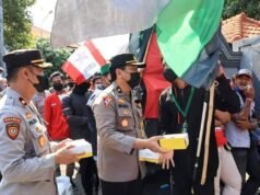 Humanis, Polres Tuban Bagikan Takjil Kepada Mahasiswa Saat Pengamanan Unjuk Rasa