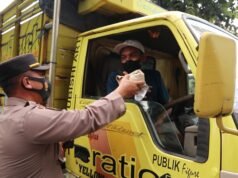 Terjebak Macet di Pantura, Polres Gresik Bagikan Nasi Bungkus dan Air Mineral Kepada Sopir