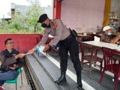 Tim URC Polres Lhokseumawe Bagikan Masker Pada Pengunjung Warkop