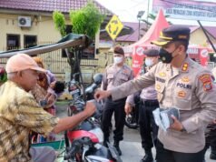Kapolres Tanjungbalai Bagikan Masker Gratis Untuk Pengendara Becak Bermotor