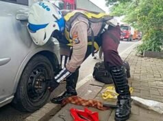 Anggota Satlantas Polres Gresik Bantu Sopir yang Alami Pecah Ban