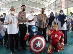 Polres Gresik Bersama Captain America dan Iron Man Vaksinasi Ratusan Pelajar SD