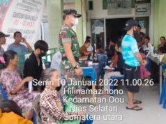 Personil Babinsa Koramil 10/Lolowau Monitoring Pelaksanaan Vaksinasi Covid-19 di Puskesmas O’Ou Nias Selatan