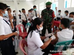 Babinsa Koramil 10/Lolowau, Menghadiri Pelaksanaan Vaksinasi Covid-19 di SMPN 1 Lolowau Nias Selatan