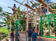 Warga Bersama Satgas TMMD 112 Siapkan Kerangka Atap Rumah