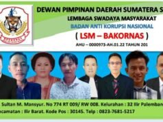 Suara Indonesia News – Palembang. Dewan Pimpinan Daerah (DPD) Provinsi Sumatera Selatan (Sumsel) Lembaga Swadaya Masyarakat (LSM) Badan Anti Korupsi Nasional (Bakornas) telah menerima surat keputusan bahkan dilengkapi kartu tanda anggota (KTA) beberapa anggota...