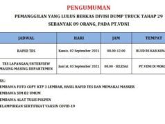 Pengumuman Pemanggilan Lulus Berkas Divisi Dump Truck Tahap 29 PT VDNI