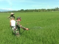 Suara Indonesia News - Aceh Utara. Babinsa Koramil 28/Prt Kodim 0103/Aut, Kopda Ahmad bantu Petani melaksanakan kegiatan penyemprotan hama padi milik Warga Binaannya Pak Asmadi di Desa Ule Blang Kecamatan Pirak Timu, Kabupaten Aceh...