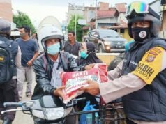 Kapolres Lhokseumawe Lepas Anggota Bhabinkamtibmas Salurkan Sembako Dalam Rangka HUT RI Ke 76
