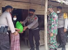 Brimob Polda Aceh Semprot Disinfektan Serta Bagi Sembako Jelang Idul Fitri