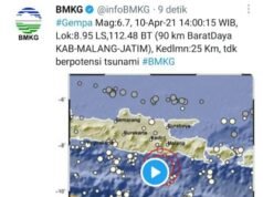 Suara Indonesia News - Gresik. Gempa bumi berkekuatan magnitudo 6,7 mengguncang Kabupaten Malang, Jawa Timur, Sabtu (10/4/2021) berdasar catatan Badan Meteorologi, Klimatologi dan Geofisika (BMKG), gempa tersebut terjadi pukul 14.00 Wib."Tidak berpotensi tsunami," mengutip...
