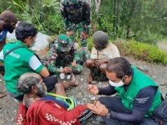 Sinergitas Satgas TNI Yonif 756/WMS dan Dinkes Kab Mimika dalam pelayanan dukungan Kesehatan bagi...