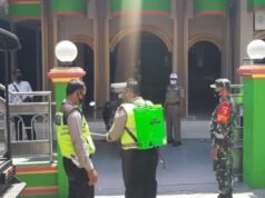 Cegah Penyebaran Covid-19, Polsek Duduk Sampeyan Semprot Disinfektan di SMP Islam