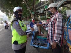 Satlantas Polres Gresik Bagikan Sembako Kepada Warga Terdampak Covid-19