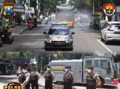 Gunakan Mobil Water Canon, Polres Gresik Gelar Penyemprotan Disinfektan