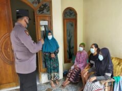 Cegah Covid-19, Bhabinkamtibmas Polsek Kedamean “SOBO KAMPUNG” Berikan Himbauan 5M dan Pembagian Masker