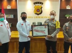 Suara Indonesia News - Lhokseumawe. Kapolres Lhokseumawe AKBP Eko Hartanto, S.I.K, M.H menerima piagam penghargaan dari lembaga Pusat Riset Ilmu Kepolisian Universitas Syiah Kuala di Mapolres Lhokseumawe, Jum'at (29/01/2021).Tampak penyerahan piagam penghargaan tersebut diterima...