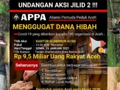 Suara Indonesia News - Banda Aceh. Aliansi Pemuda Peduli Aceh (APPA) Jilid 2 akan melakukan aksi demonstrasi kembali di kantor Gubernur Aceh pada Senin, (25/01/2021) pukul 14.00 WIB untuk menuntut kembali berbagai persoalan terkait...