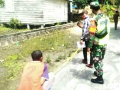 Babinsa Desa P Batang Koramil 06 Senayang Kodim 0315/Bintan, Pantau Pengukuran Drainase di Dusun...