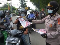 Polwan Polresta Cirebon Turun ke Jalan Sosialisasikan PPKM