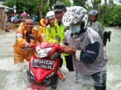 Suara Indonesia News - Bintan Kepri. Sikap cepat tanggap bantu warga yang terjebak banjir di jalan Nusantara km 18 Kecamatan Bintan Timur, Babinsa Gunung Lengkuas Sertu Sibarani membantu para peegendara roda dua yang terjebak...