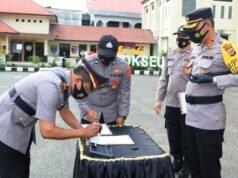 Kapolres Lhokseumawe Pimpin Upacara Sertijap Kabag Ren, Kasat Polair dan Kapolsek Kuta Makmur