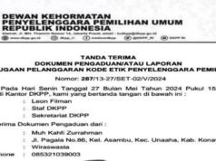 Suara Indonesia News – Konawe. Laporan dugaan pelanggaran etik komisioner Komisi Pemilihan Umum (KPU) Kabupaten Konawe telah teregister di Dewan Kehormatan Penyelenggara Pemilu (DKPP), Senin 27 Mei 2024.Hal tersebut diungkapkan oleh oleh Muhammad Kahfi Zurahman, mantan Komisioner KPU...