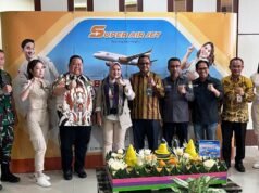 Anton Timbang Hadiri Penerbangan Perdana Super Air Jet di Sultra