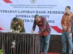 Suara Indonesia News – Konawe. Ketua DPRD Kabupaten Konawe, Sulawesi Tenggara, Dr. H. Ardin,S.Sos, M.Si., bersama Sekretaris Daerah (Sekda) Kabupaten Konawe, Dr. Ferdinand Sapan, SP.MH., menerima Laporan Hasil Pemeriksaan (LHP) Kinerja dan Pemeriksaan Dengan...