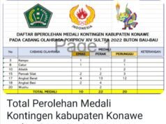 Suara Indonesia News – Buton. Kontingen Atlet Kabupaten Konawe, Sulawesi Tenggara yang berlaga di Pekan Olahraga Provinsi (Porprov) Ke XIV Sultra di Buton-Baubau kian menambah koleksi medali Emas, Perak dan Perunggu.Perolehan medali atlet Konawe...