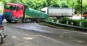 Tronton Melintang Terjebak Lumpur, Jalur Ponorogo – Pacitan Macet