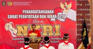 Suara Indonesia News - Gunung Sugih Lampung. Tiga warga binaan pemasyarakatan Lembaga Pemasyarakatan Kelas IIB Gunung Sugih melaksanakan Penandatanganan Pernyataan dan Ikrar Setia kepada...