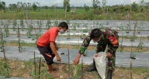 Suara Indonesia News - Aceh Uatara. Babinsa Koramil 28/Prt Kodim 0103/Aut serda M. Nizar Melaksanakan Pengecekan dan membantu pembersihan juga merawat tanaman cabe Petani...